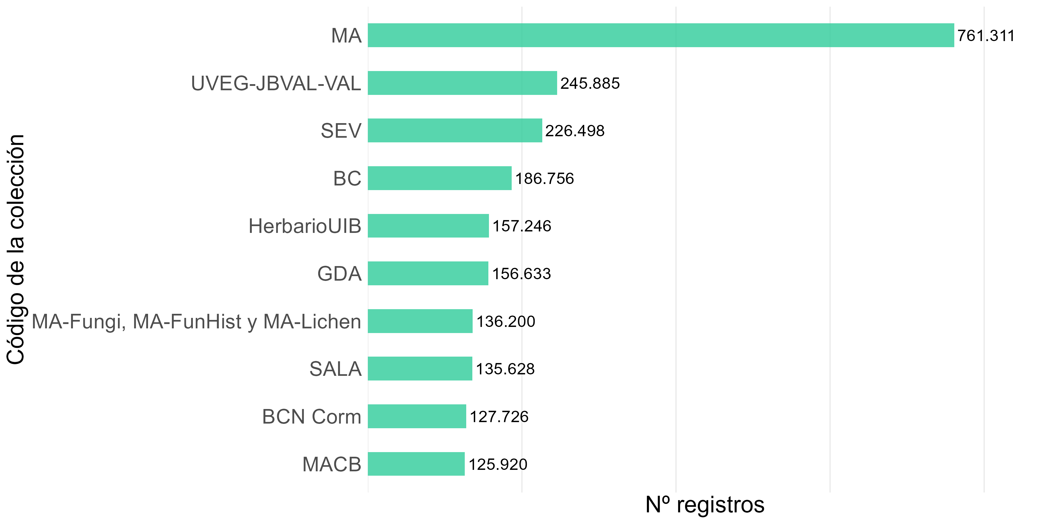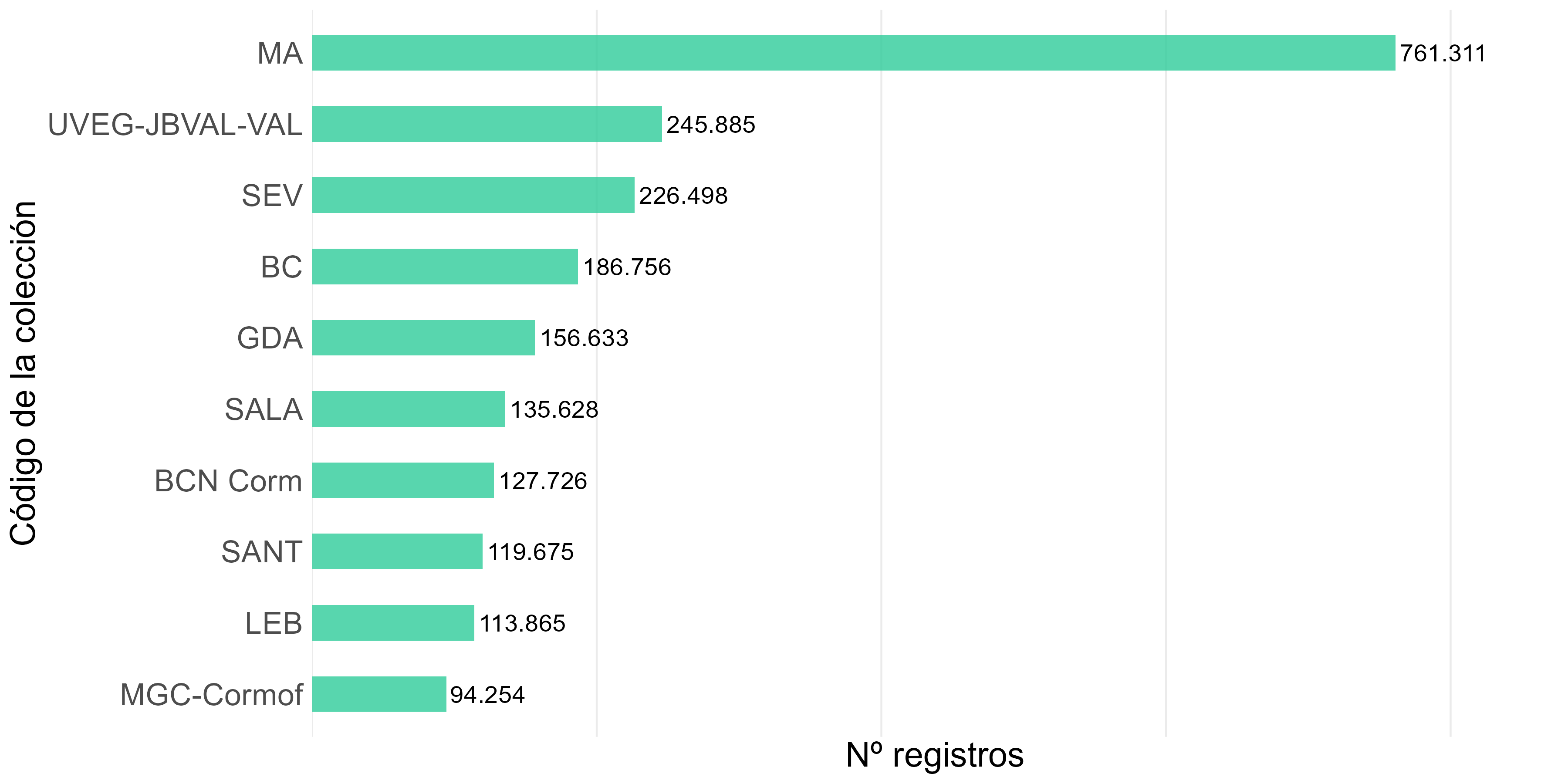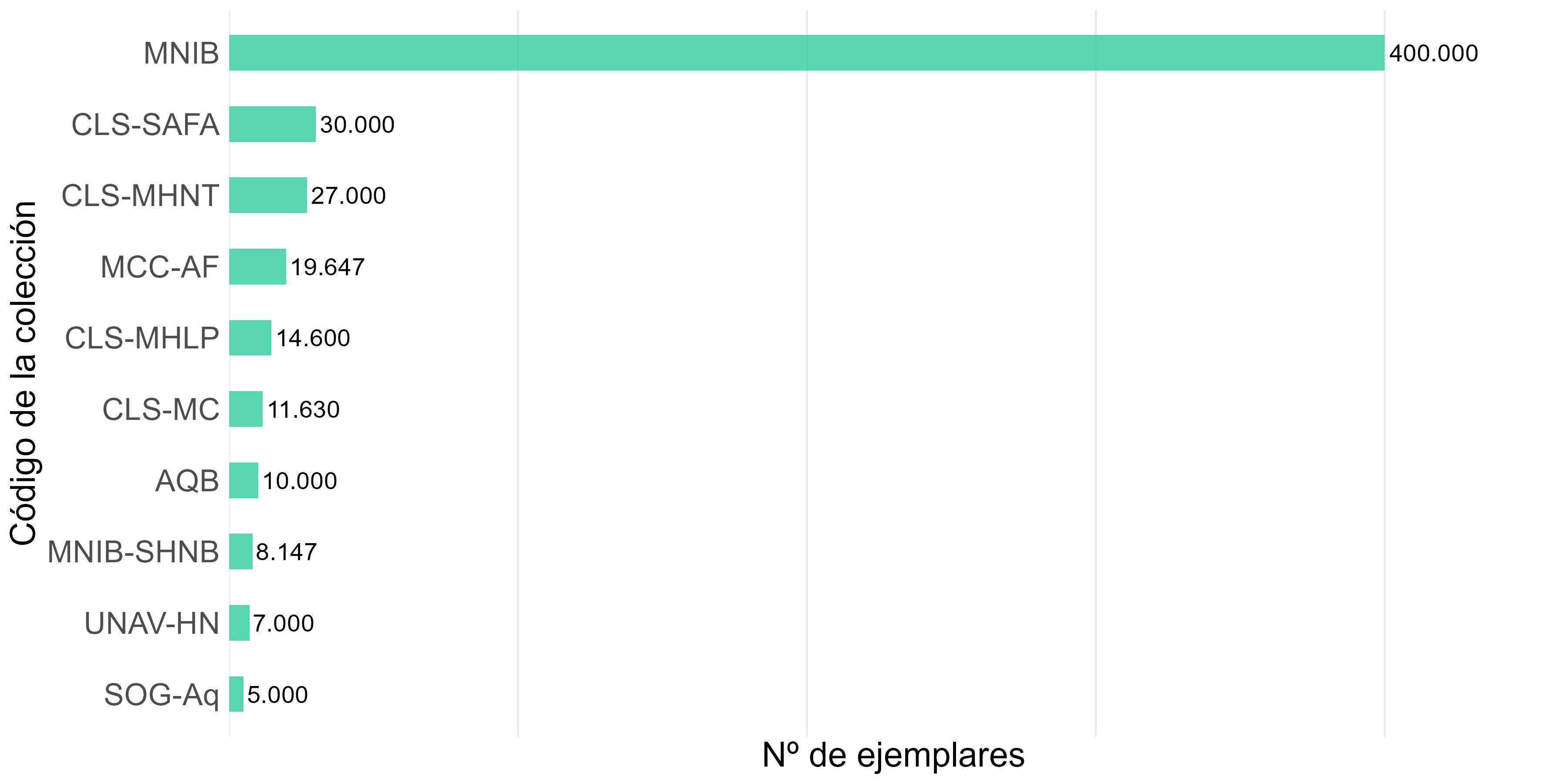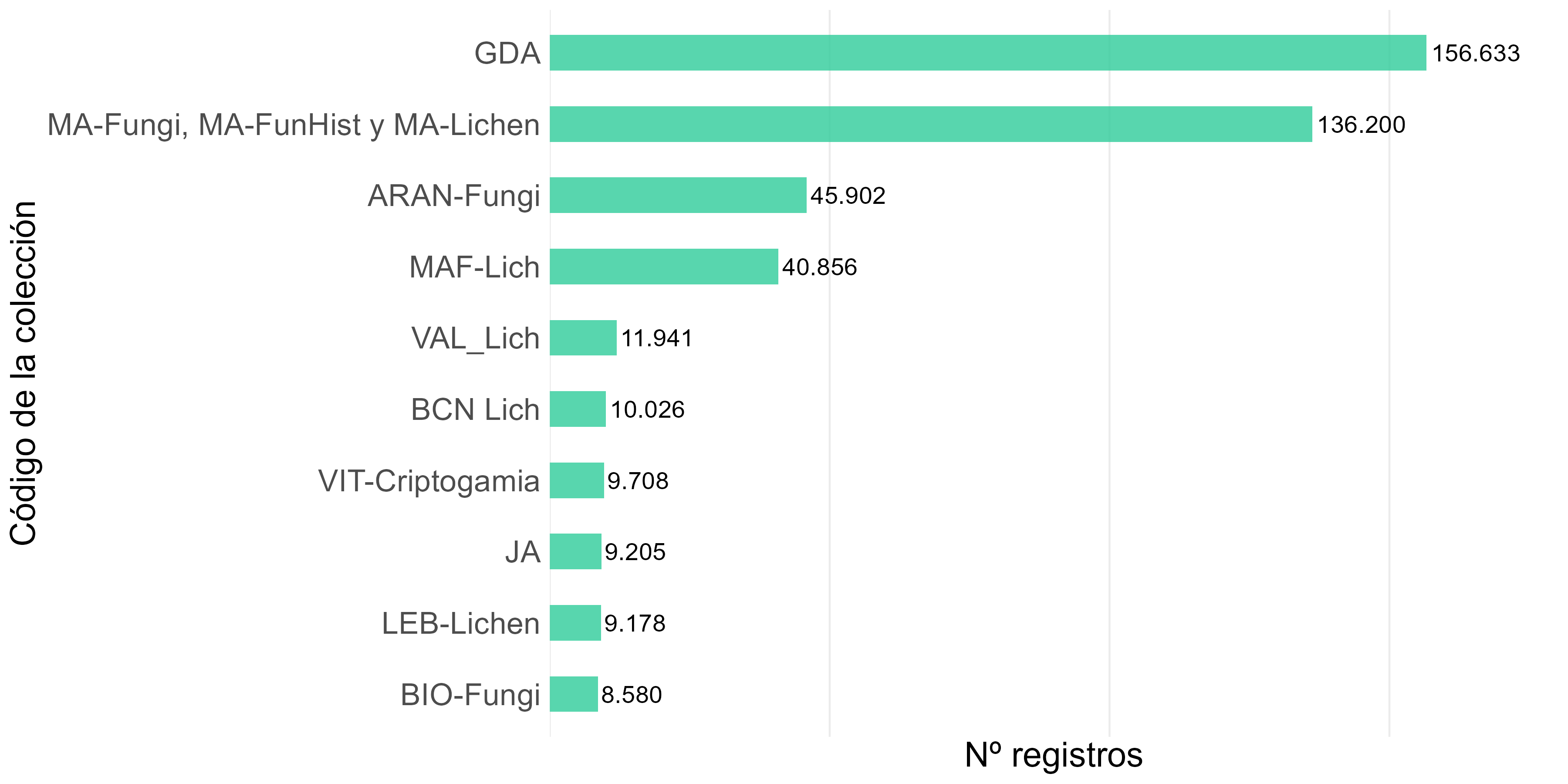 Número de ejemplares de las mayores colecciones botánicas de hongos