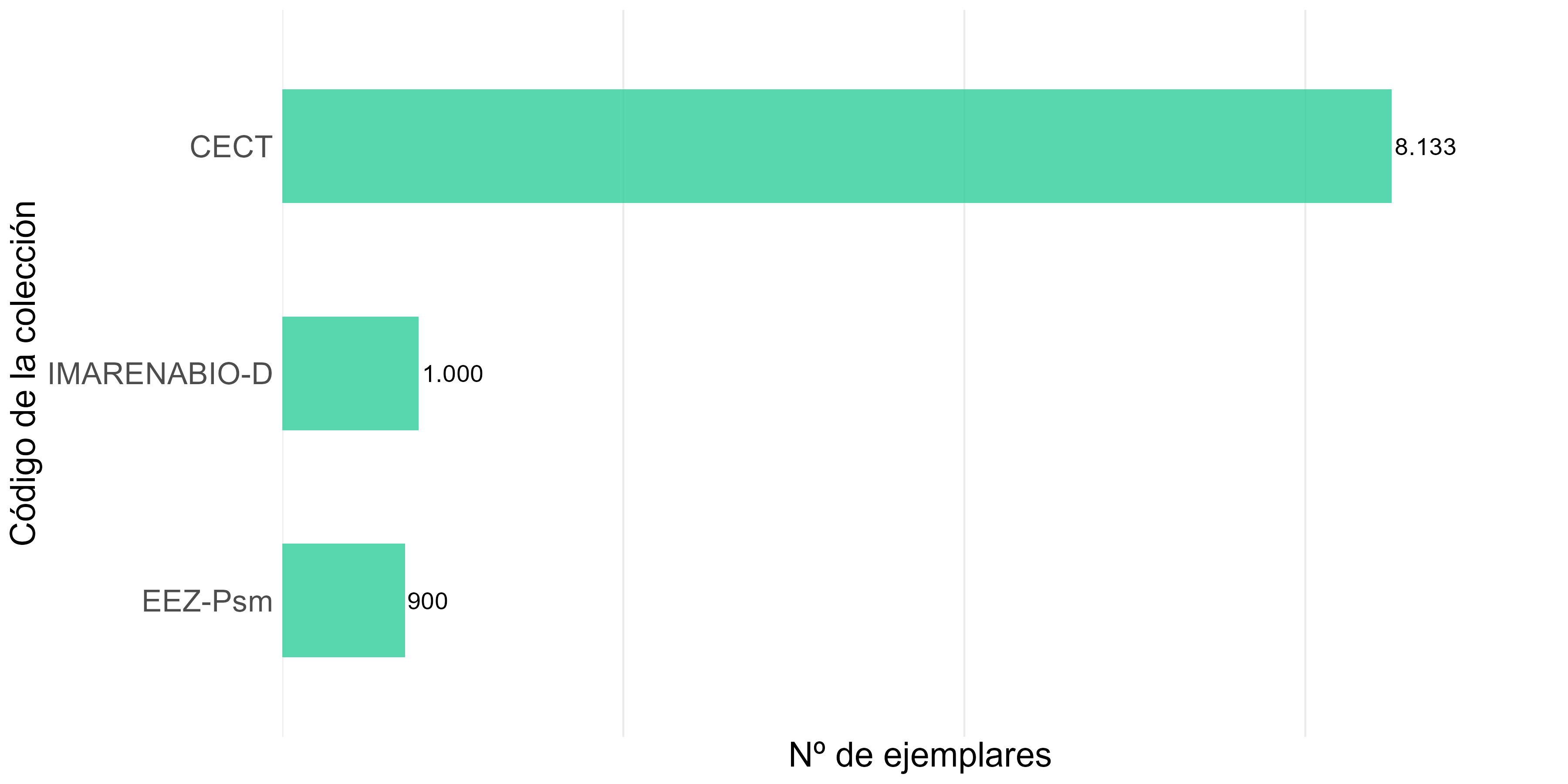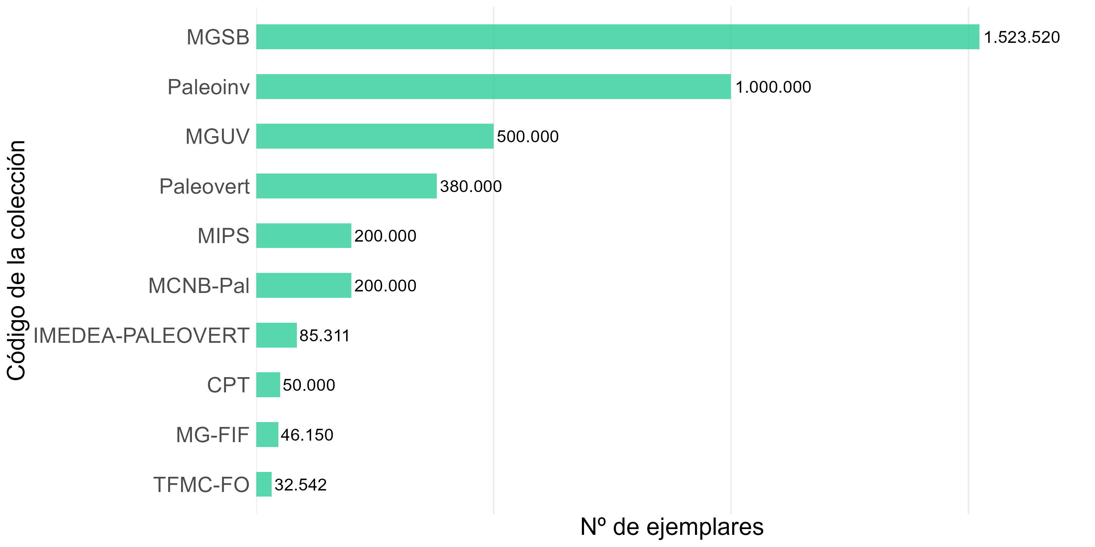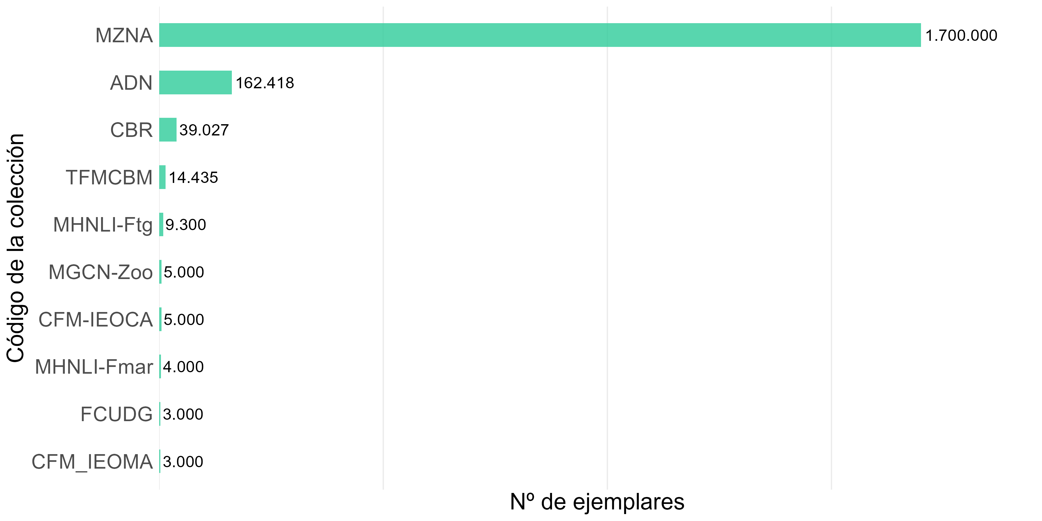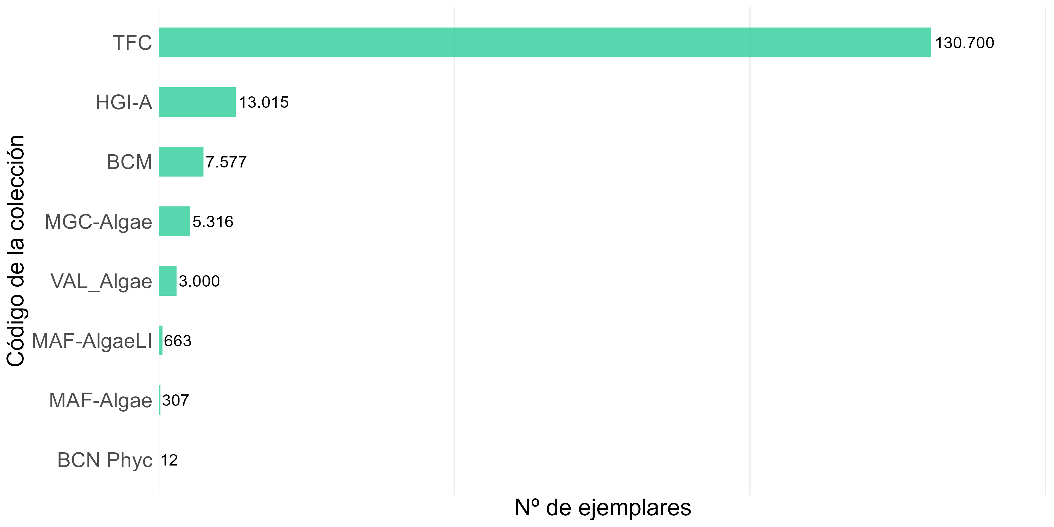 Número de ejemplares de las mayores colecciones botánicas de hongos