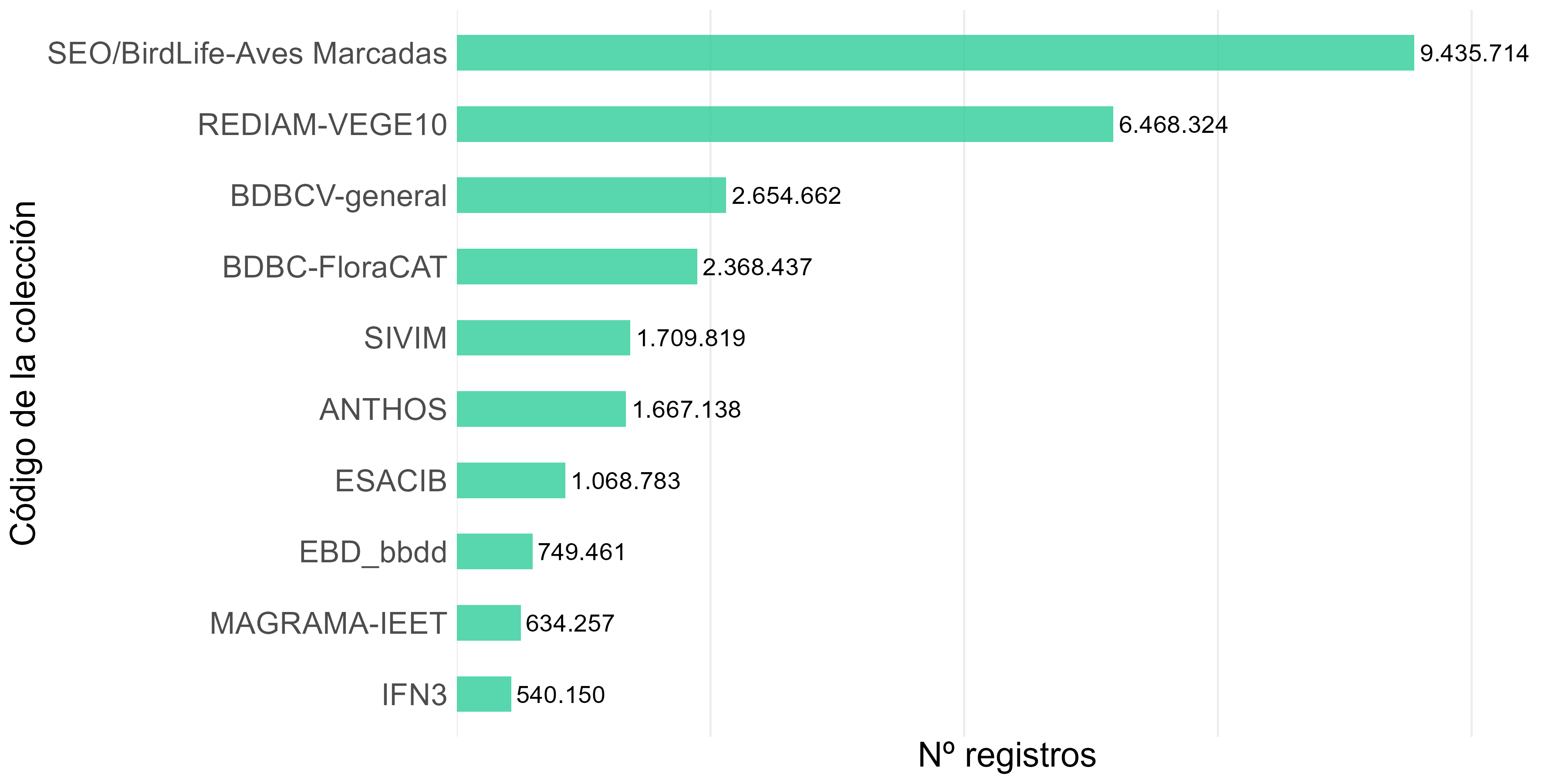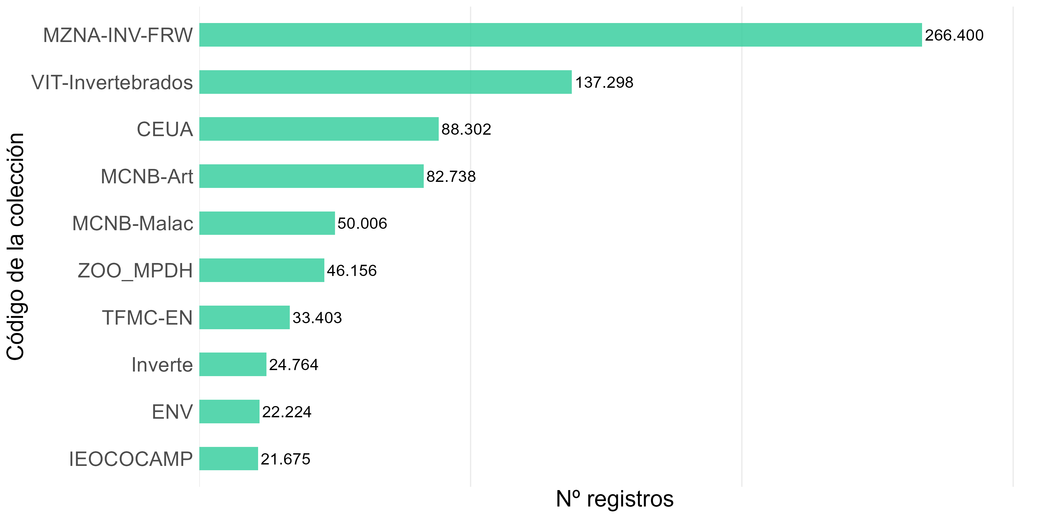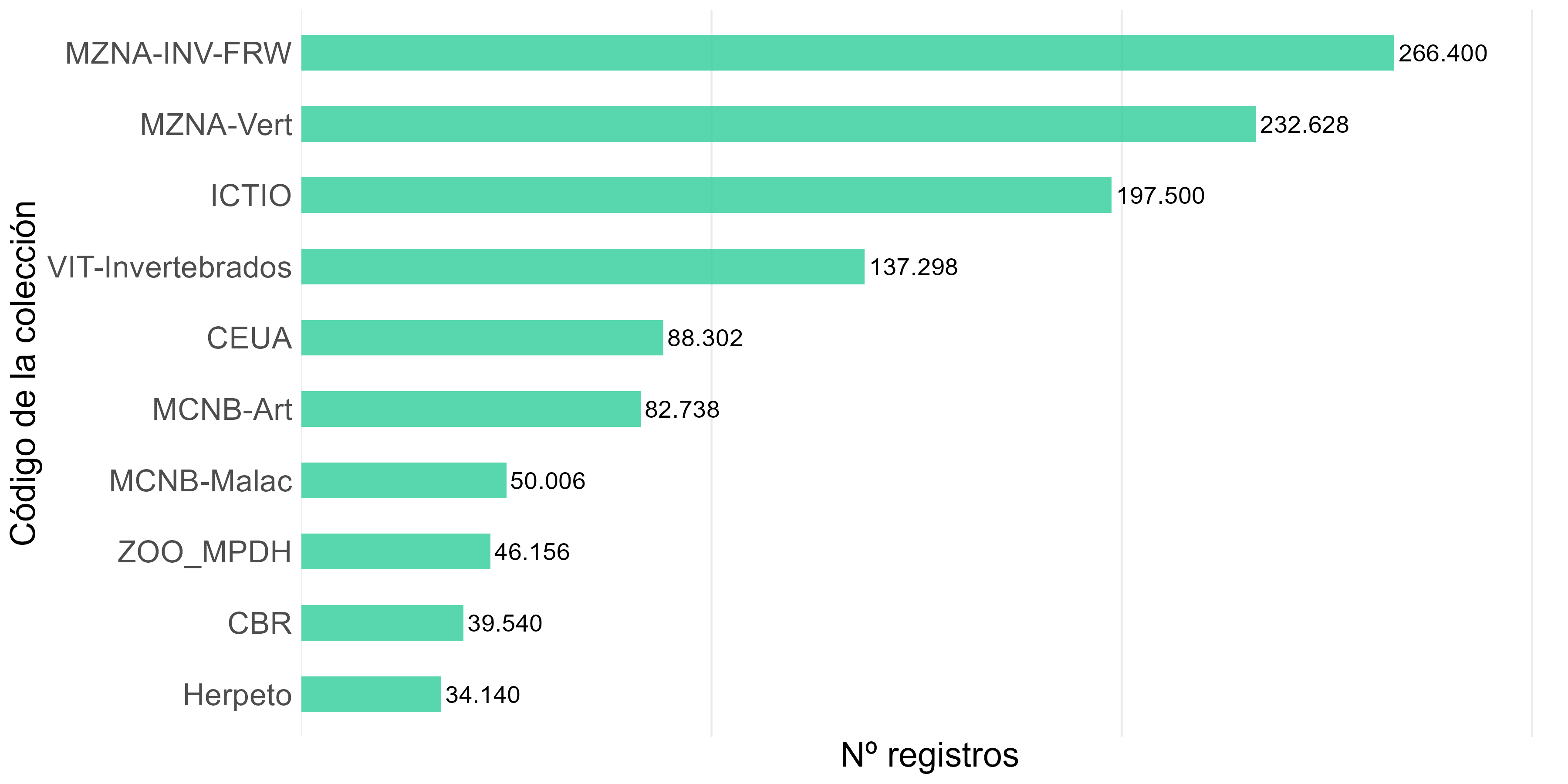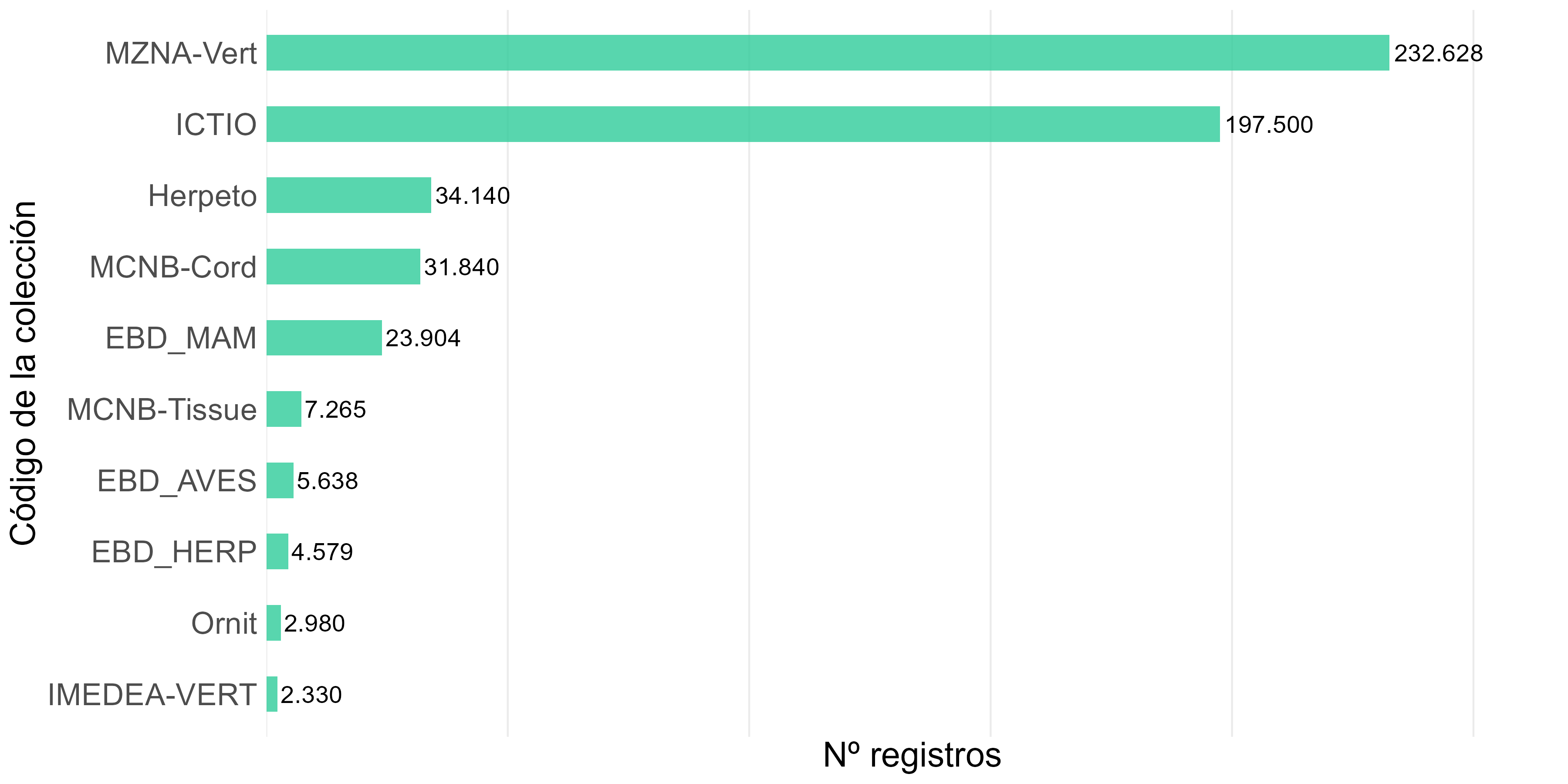 Número de ejemplares de las mayores colecciones botánicas de hongos